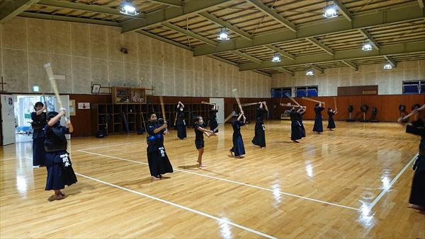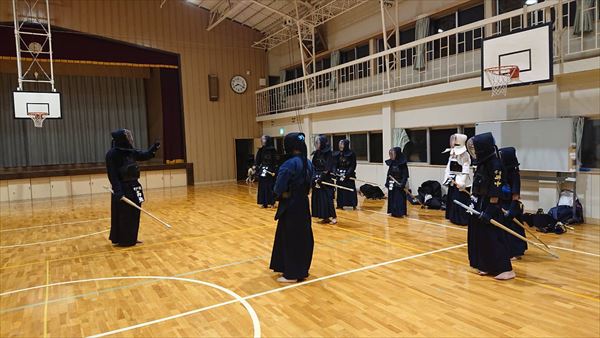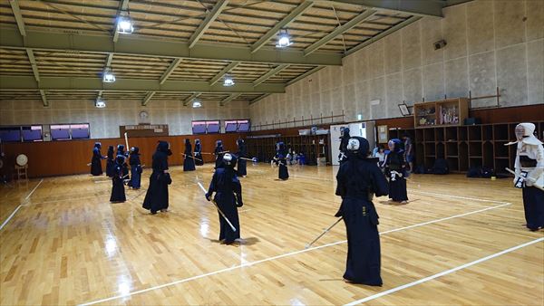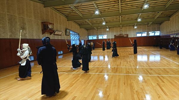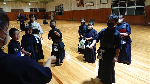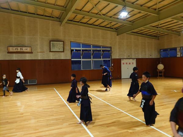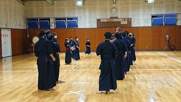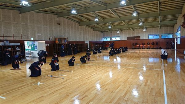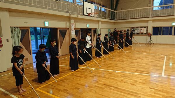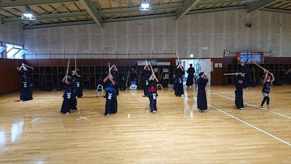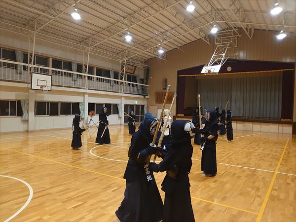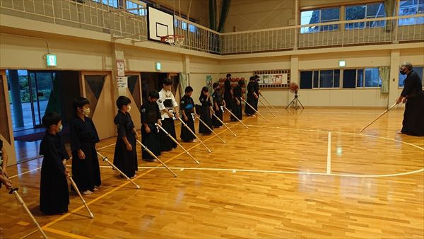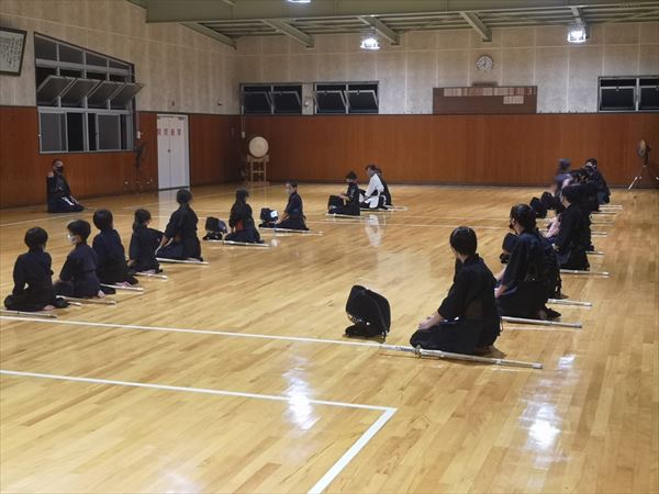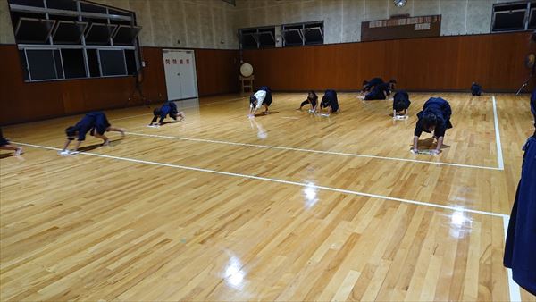 大雨により海洋センターが休館となったため古沢小学校の体育館での稽古になりました。