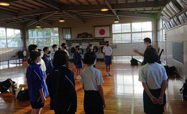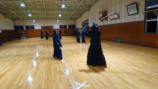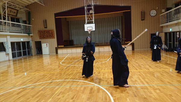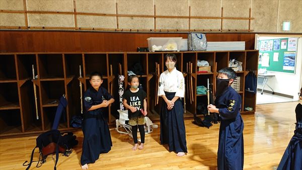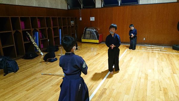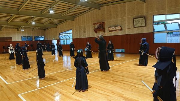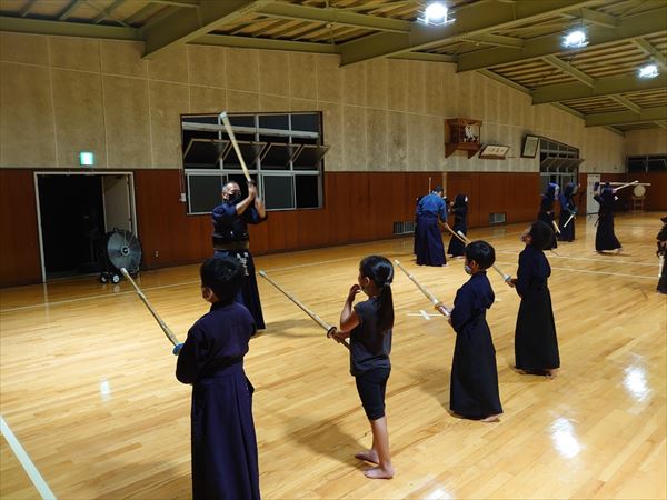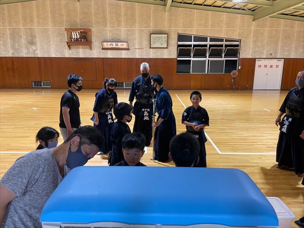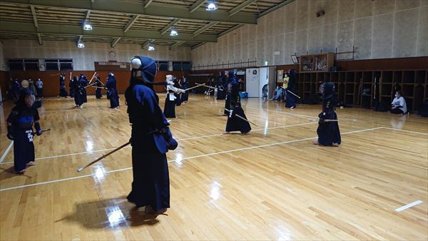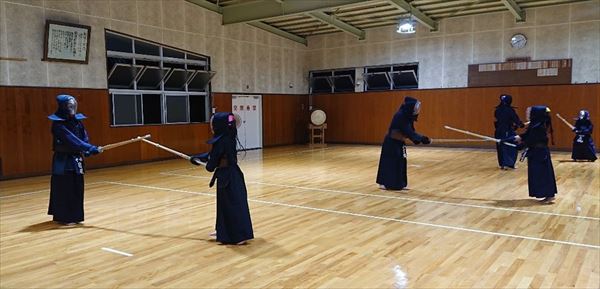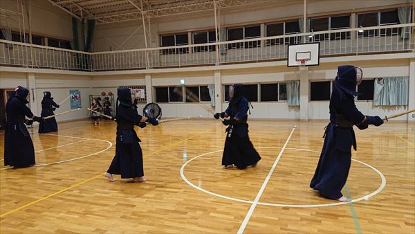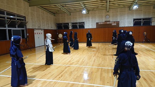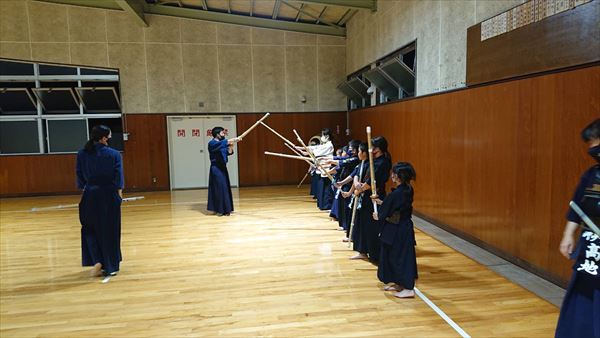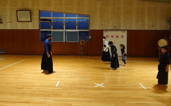 大雨により海洋センターが休館となったため古沢小学校の体育館での稽古になりました。