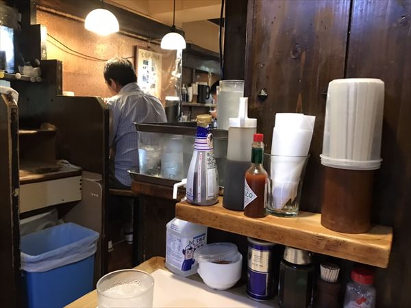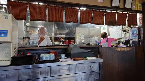 厨房内では何度も手にとって丁寧にそばを茹でる職人さん