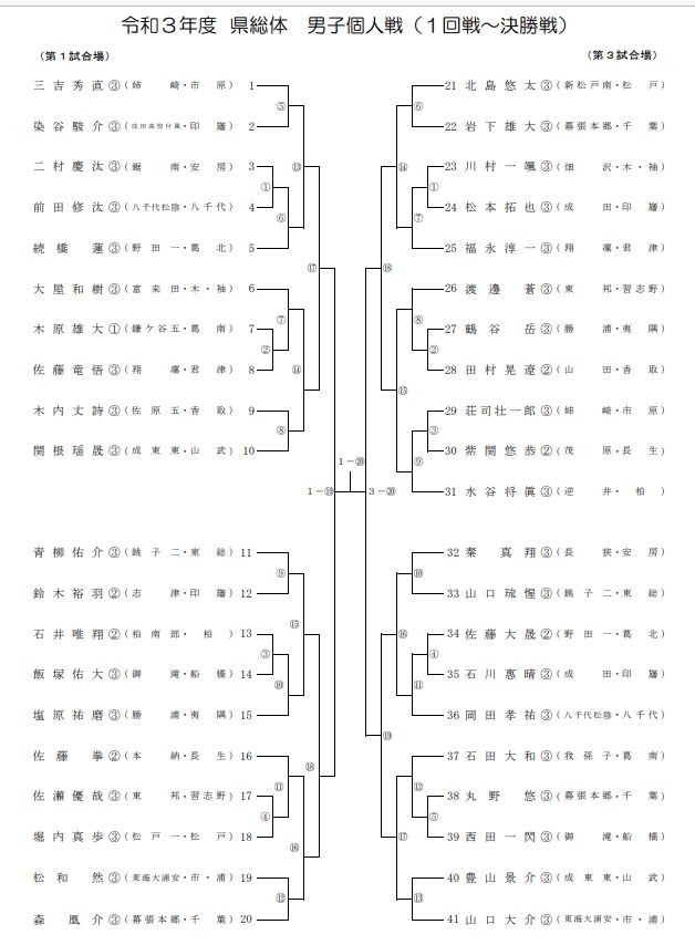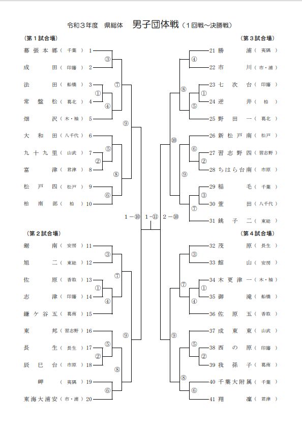 本日、中学校千葉県総体男子団体が行われました。無観客試合での開催したが