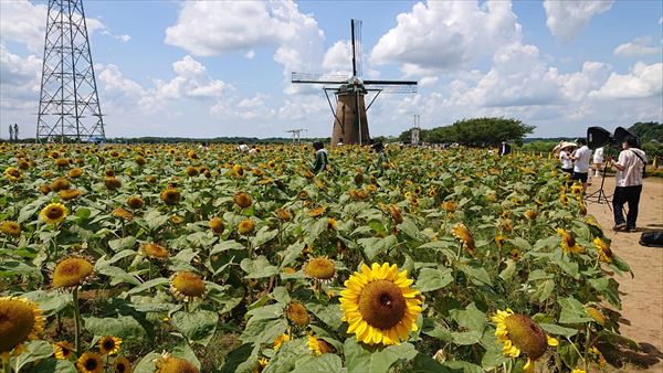 この時期は画家「ゴッホ」にちなんで命名されたひまわり、約1万5千本が咲きそろいます。
